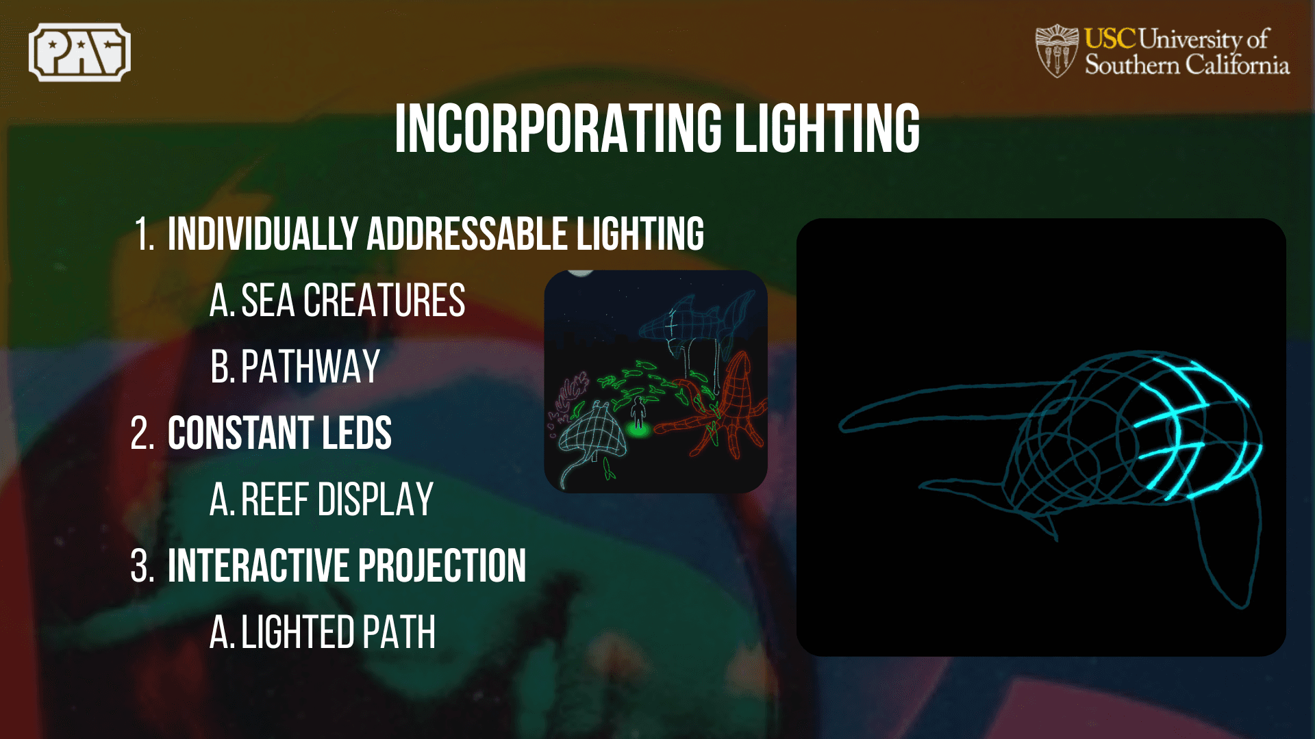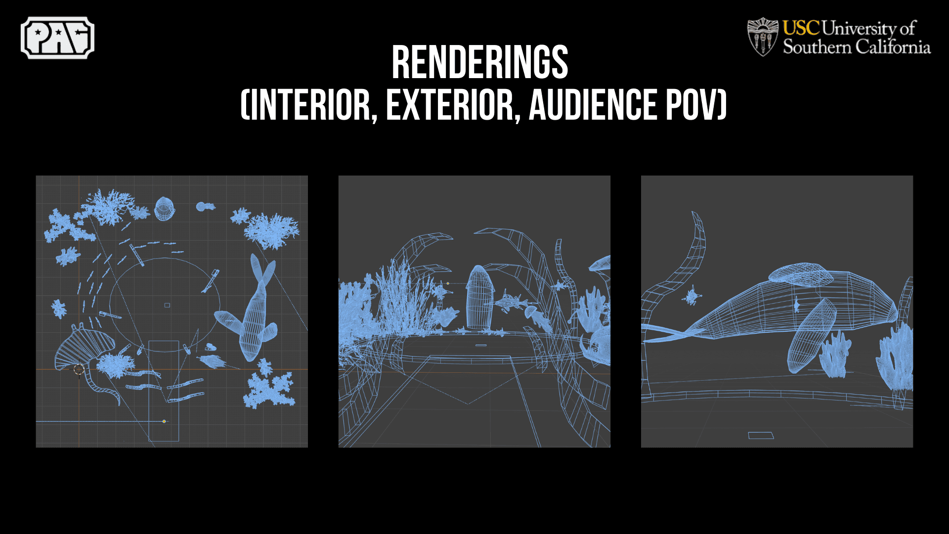 An installation incorporating the creatures of the deep sea, using a panoramic perspective to create a sense of scale and floor projections for interaction.